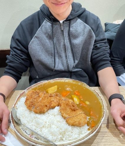 I confidently informed my son not to get too excited by the ‘double portion’ promise on the katsu curry. ‘It’s probably just a quirk of translation between Japanese and English’, I suggested, on the basis of no real information at all. ‘It’ll just mean large’.
