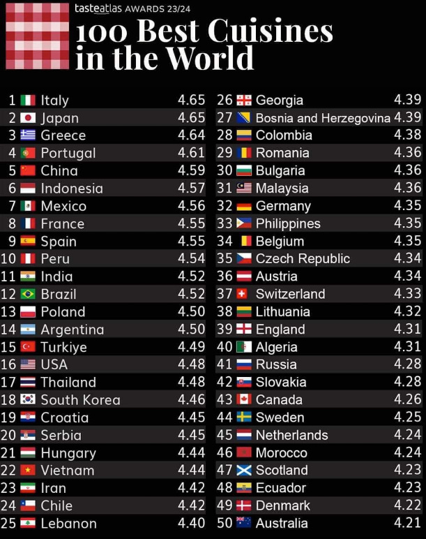 I’m not sure that I have the patience, let alone the funds, to indulge too much elevated foodie chat. But I accept that it is probably no coincidence that the two top world cuisines both value high-quality ingredients over complexity of recipes.
