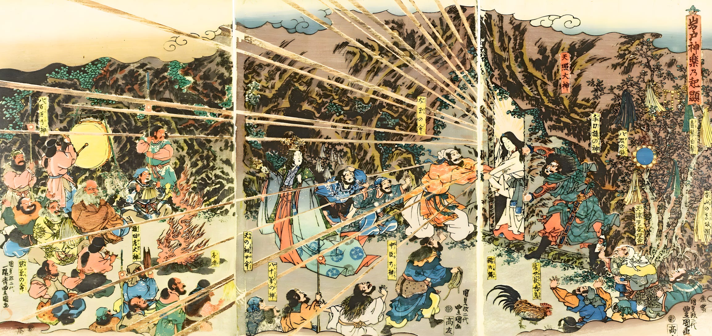 The Sun Goddess, Amaterasu, emerging from a cave in one of the classic stories of Japanese mythology