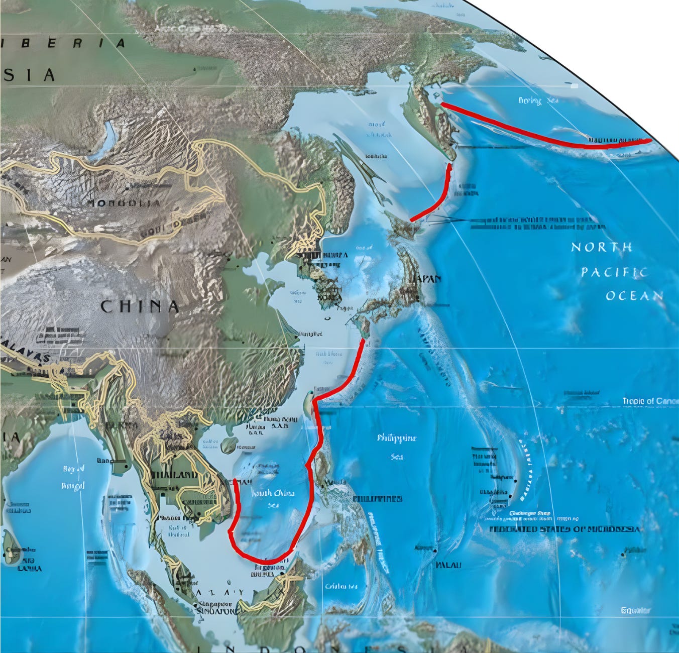 The ‘First Island Chain’, running from the Kuril Islands in the north down to Borneo in the south