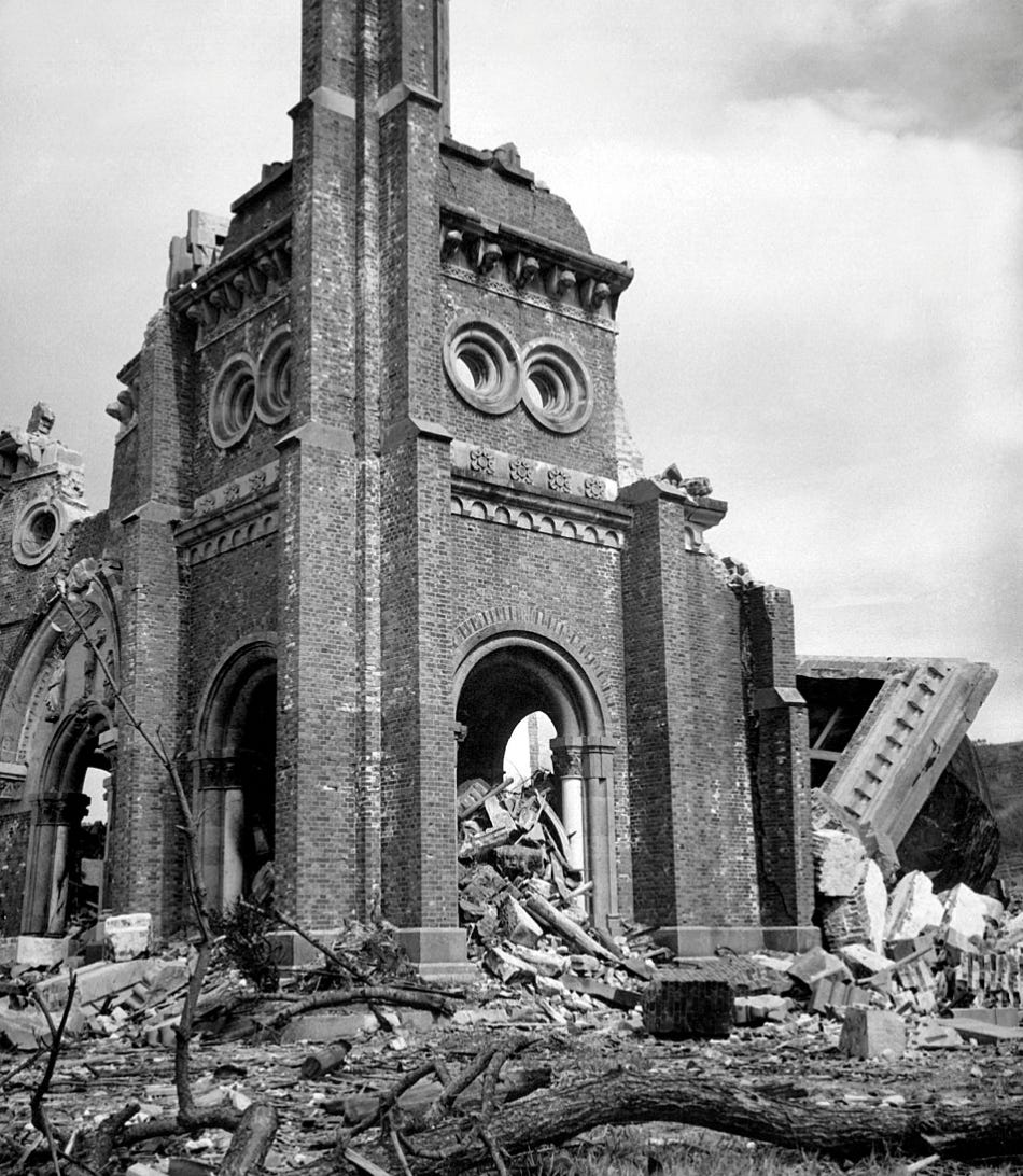 Ruins of Urakami Cathedral: Wikimedia Commons (public domain).