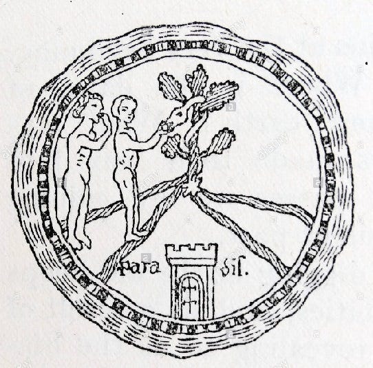 Below: one of many pieces of Christian symbolism showing Adam, Eve and the four rivers of paradise.