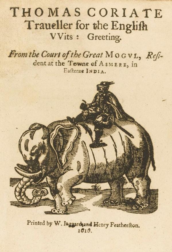 Below: a collection of letters written by the English traveller Thomas Coryate, who spent time at the Mughal court in the early 1600s during the reign of Emperor Jahangir