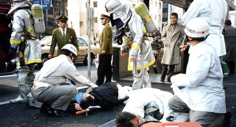 Aftermath of the sarin gas attack on the Tokyo underground, March 1995
