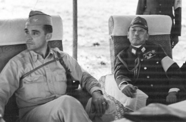 Arisue Seizō pictured on 28th August 1945 - the first day of the Occupation - looking for all the world like a man who knows something the man sitting next to him doesn’t…