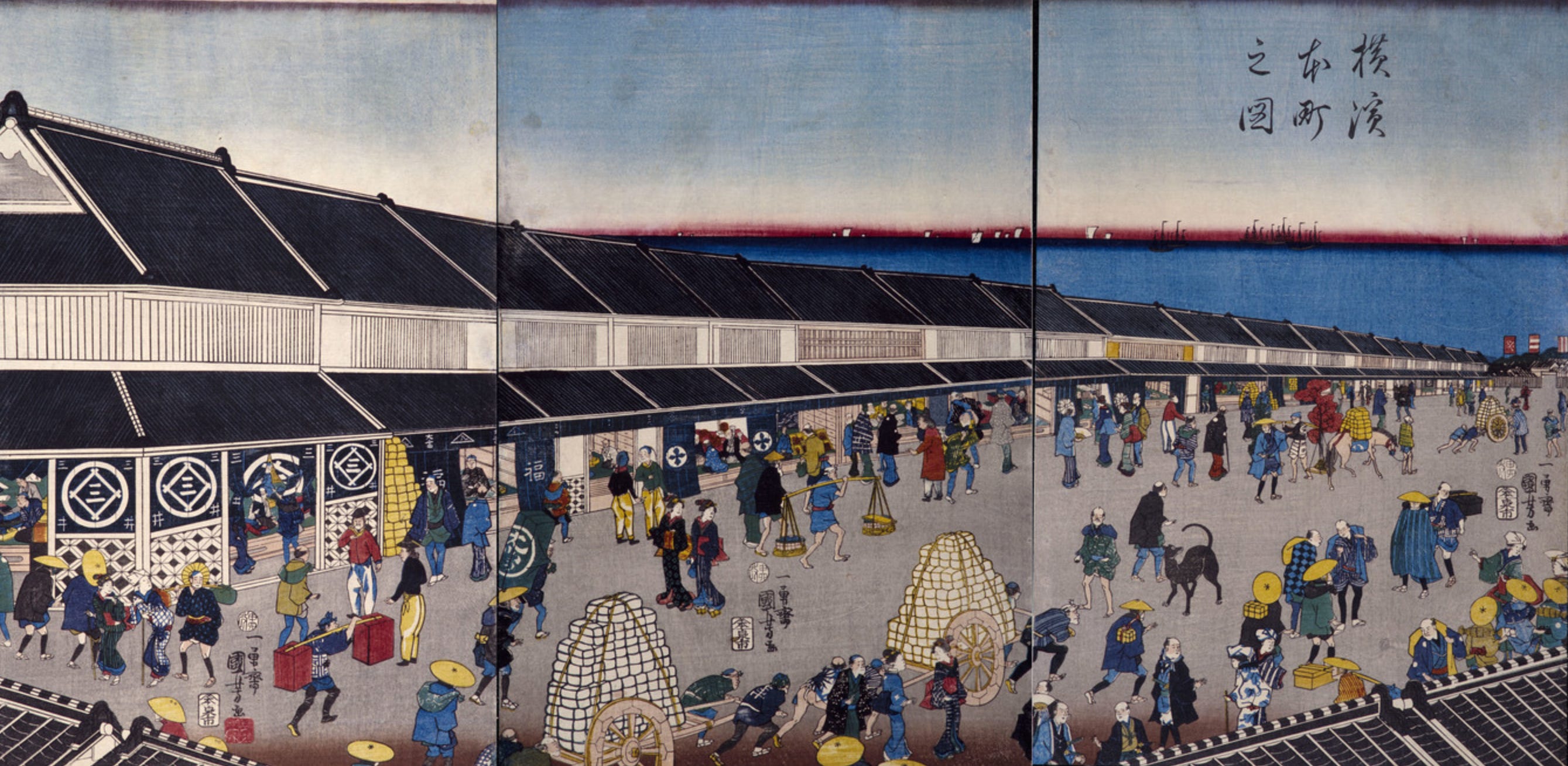 Woodblock print of Yokohama: Yokohama Museum of Art (fair use).